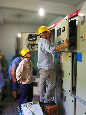 15日一早,廠家和電力公司技術(shù)人員帶著相應(yīng)設(shè)備和工具,先切斷南北配電房主電纜,改為發(fā)電機(jī)供電,同時(shí)為了做到有備無(wú)患,中心還請(qǐng)清障施救人員幫忙將移動(dòng)發(fā)電機(jī)拉至隧道外廣場(chǎng)備用,以保證隧道正常照明及運(yùn)營(yíng)。配電房?jī)?nèi),20多名技術(shù)人員被分成了組裝組、接線組以及安裝組,大家各司其職、各盡其責(zé),現(xiàn)場(chǎng)一派忙碌的景象。為不影響隧道內(nèi)正常用電,配電房配置的空調(diào)成了擺設(shè),在這悶熱的房間里,大家僅靠一臺(tái)電扇一干就是六七個(gè)小時(shí),身上的衣服濕了干,干了又濕,但大家毫無(wú)怨言,渴了就喝口水,累了就坐地上休息幾分鐘后又立馬投入到緊張工作中。最終,在15點(diǎn)50左右,所有安裝設(shè)備經(jīng)過(guò)聯(lián)調(diào)測(cè)試一次通過(guò),隧道又恢復(fù)了正常市電供電。