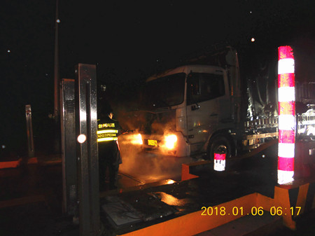 1月6日,一輛車牌為J52286的貨車著火,在收費員楊丹妮的應急救援下,成功控制住了火勢,沒有造成重大損失。 當天凌晨6:18,天還未亮,溫嶺西收費所還沉浸在一片安靜中,突然,收費車道上傳來一陣急剎車的聲音,收費員紛紛從倦意中驚醒。一輛車牌為浙J52286的貨車停在了收費車道上,駕駛員從駕駛室直接跳下車跑到收費窗口,急促地喊道:“有滅火器嗎?有滅火器嗎?車子著火了?!?/span>