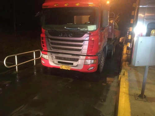 圖為超高超寬的運(yùn)樹大貨車 5:10分,違章大貨車通過黃土嶺隧道,由于大貨司機(jī)一直違章占隧道中線行駛,未對(duì)黃土嶺隧道設(shè)施設(shè)備造成影響,執(zhí)勤隊(duì)員便跟在違章車輛后面關(guān)注其進(jìn)出口動(dòng)向。 5:29分,違章車輛在臺(tái)州南副站出口處被執(zhí)勤隊(duì)截停,等待處理善后事故的交警車輛到來。