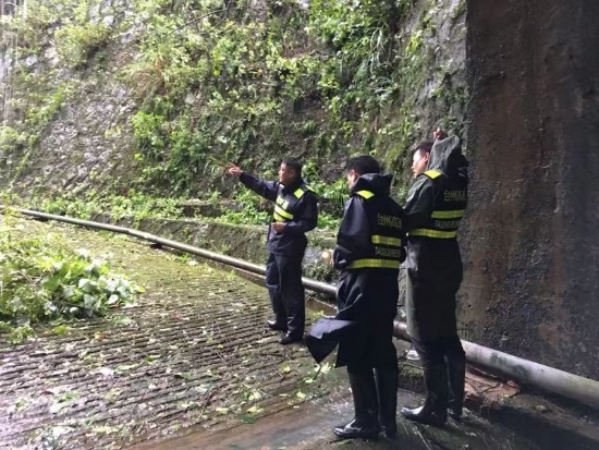一大早,徹夜未眠的所負(fù)責(zé)人、執(zhí)勤隊(duì)員又開始緊張忙碌:巡查斜井、邊坡、山體、邊溝部位;檢查南北配電房漏水情況,確保臨時(shí)用電安全;查看所轄路段警示牌倒塌或受損情況;及時(shí)補(bǔ)充抽水泵等應(yīng)急物資,增加豎井排水設(shè)備,提高排水能力,預(yù)防隧道內(nèi)出現(xiàn)雨水倒灌現(xiàn)象;給停電停水的馬宗嶺隧道人員送去糧食和飲用水等物資,做好后勤保障。