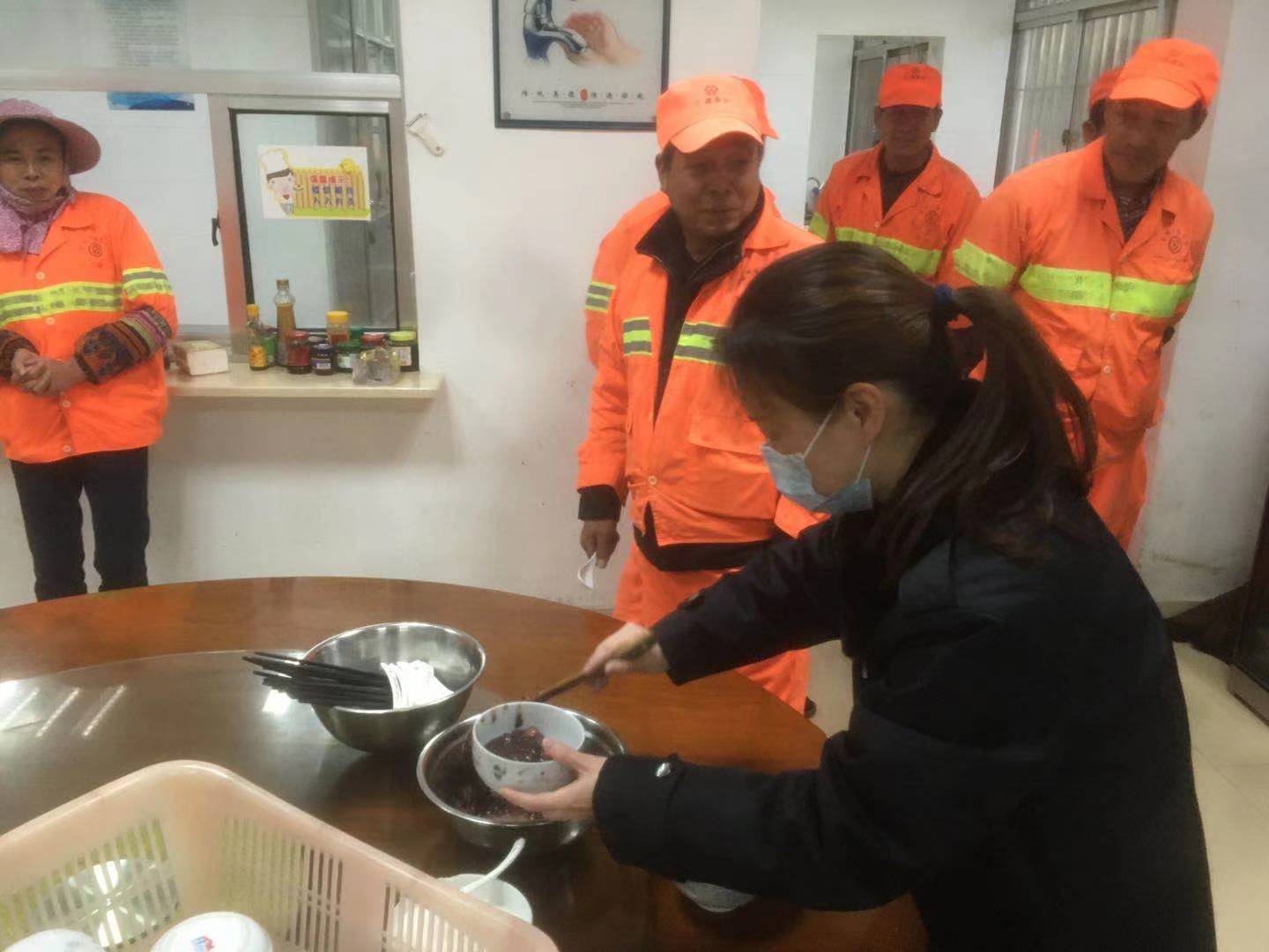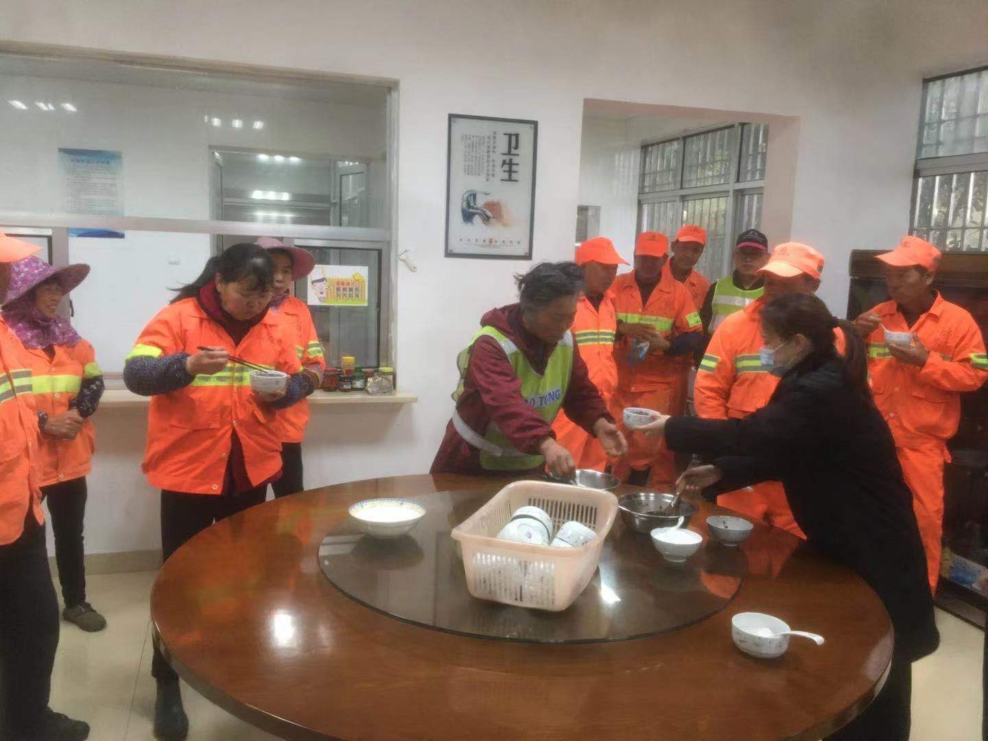 (圖為隧道所邀請養(yǎng)護人員到所食堂喝粥)