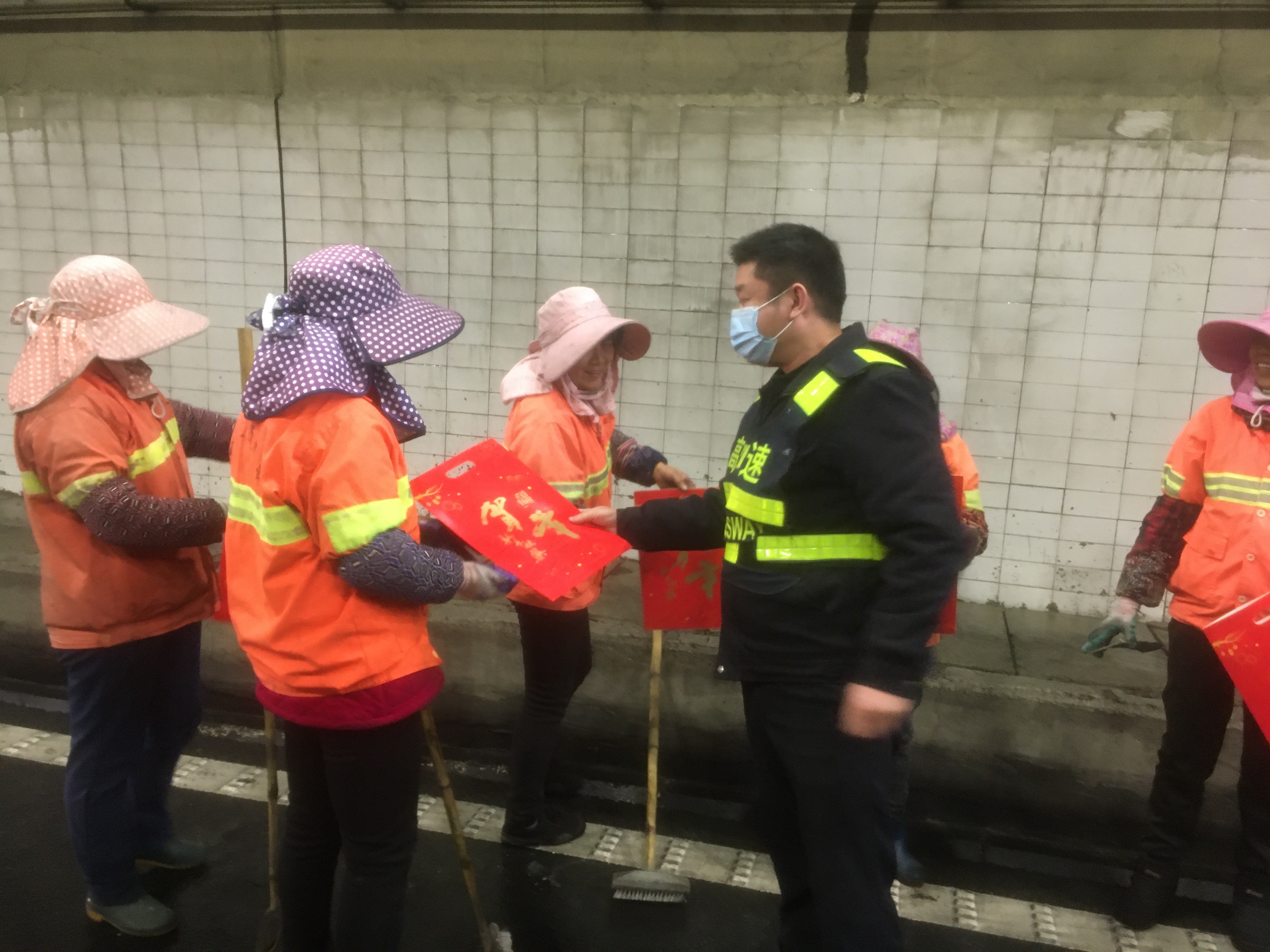 上午十點左右,盧所把工人們迎到食堂,熱情的招呼著大家。當班的隊員們把一碗碗熱乎乎的臘八粥送到養(yǎng)護工人們的手中,吃著這冬日里的熱粥他們臉上露出了由衷的笑容。 下午,從公司匆匆趕回來的應所帶領隊員們對隧道的清洗情況進行了驗收,肯定了養(yǎng)護工人們的勞動成果,并表示了親切的慰問,同時把一幅幅春聯(lián)親自送到了他們的手中。
