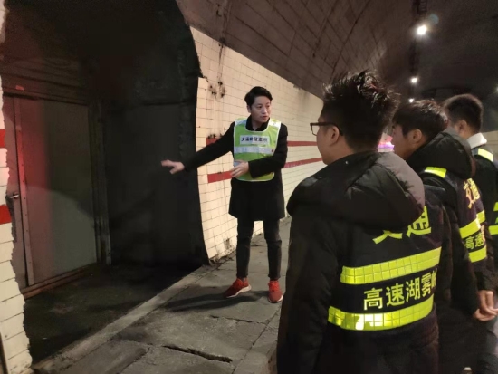 圖為羅鳴春對樂清市高速公路湖霧嶺隧道開發(fā)有限公司駐隧道南邊執(zhí)勤點的幾位新員工進行培訓(xùn) 借此次隧道清洗良機,所長助理羅鳴春對樂清市高速公路湖霧嶺隧道開發(fā)有限公司駐隧道南邊執(zhí)勤點的幾位新員工進行業(yè)務(wù)培訓(xùn),帶他們進入隧道熟悉隧道內(nèi)消防箱、人通、汽通的位置,并告知平時執(zhí)勤時的工作任務(wù),詳細解說了隧道封道、卡口、路面執(zhí)勤、施救的操作流程,希望他們能盡快融入工作,為大溪嶺-湖霧嶺隧道平安暢通貢獻力量。臺溫雙方將持續(xù)合作,共同管理,共同維護好這條隧道。 陳智慧
