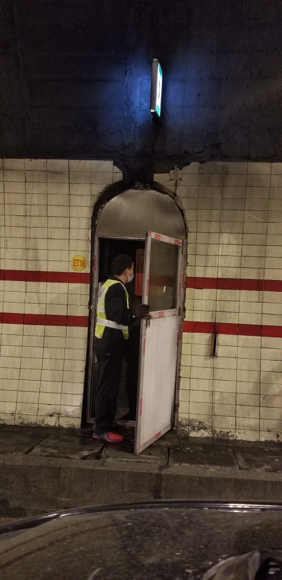 圖為工作人員在檢修緊急電話 此次隧道清洗,隧道所員工加班加點,檢查隧道內(nèi)消防箱、檢修隧道風機和加強燈回路、修理故障的語音提示,對配電房機電設(shè)備進行除塵保養(yǎng),還檢測了火災(zāi)報警、緊急廣播、緊急電話等系統(tǒng)。