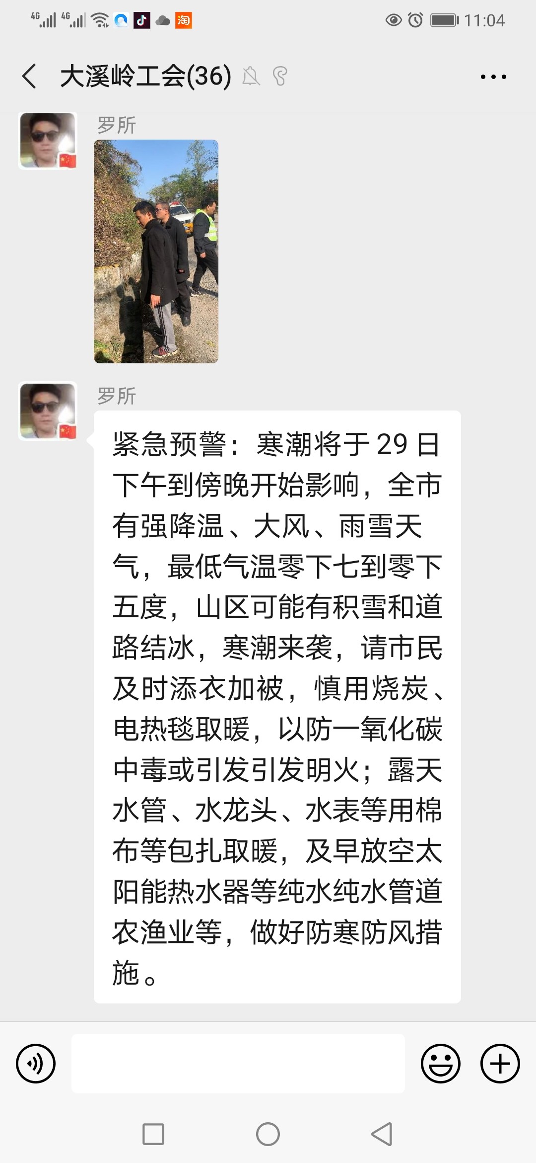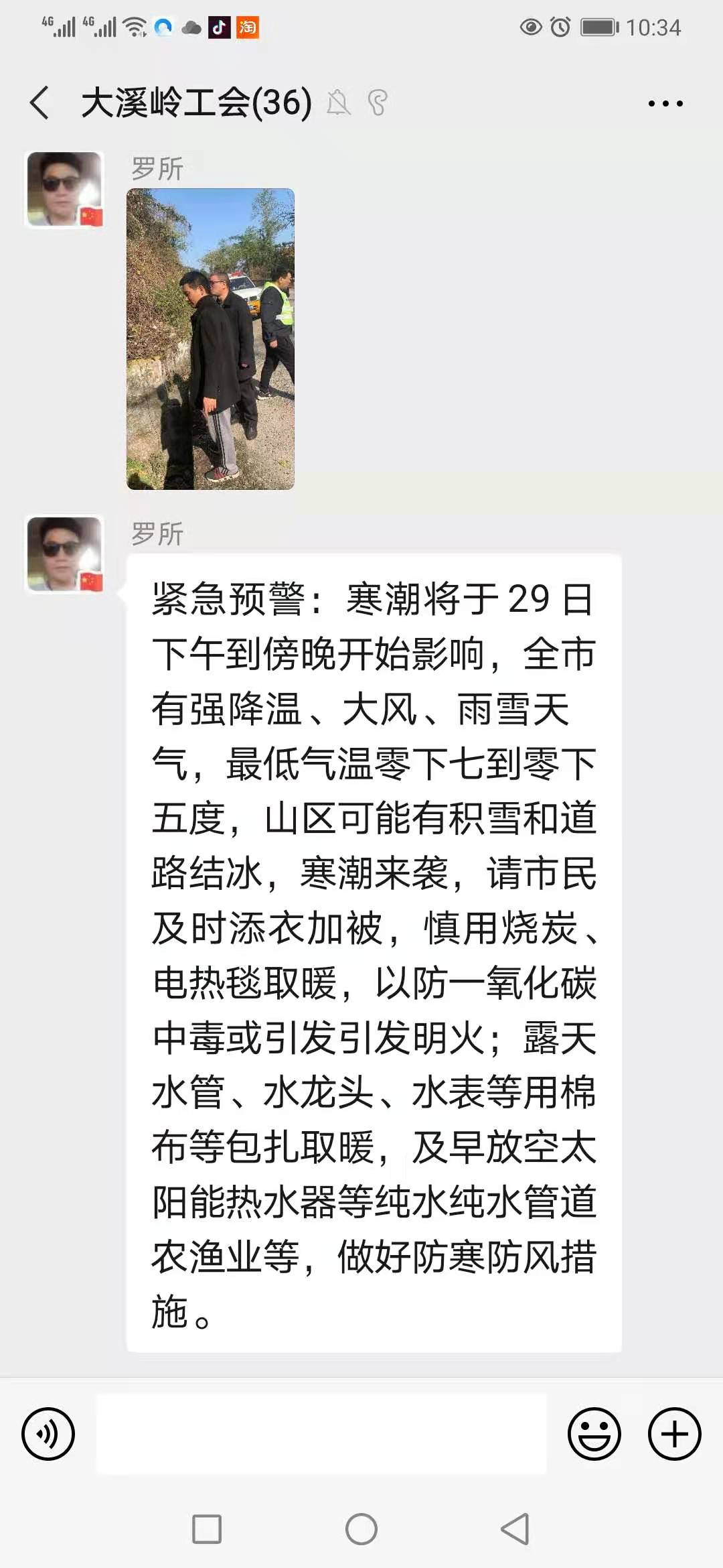 大溪嶺暖心行動還在所里的工作群中“溫馨提醒:寒潮前家中如何做好用水設(shè)備的防凍保暖”,并提醒安全用電注意事項(xiàng)。2020的最后幾天,希望大家都能平平安安地度過,迎接牛氣沖天的2021! 陳智慧