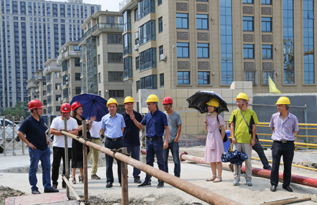圖為集團副董事長、總經(jīng)理張建平在文鼎苑項目工地了解工程進(jìn)度情況