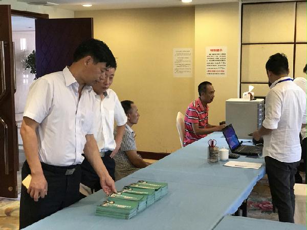 圖為集團(tuán)副總經(jīng)理陳保衛(wèi)正在檢查收購(gòu)點(diǎn)宣傳資料