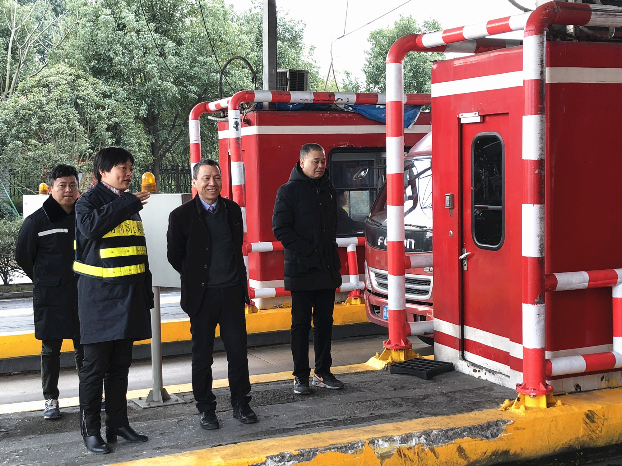 圖為公司總經(jīng)理張建平在溫嶺西收費(fèi)站檢查