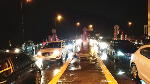圖為免費(fèi)時(shí)段結(jié)束后的車流