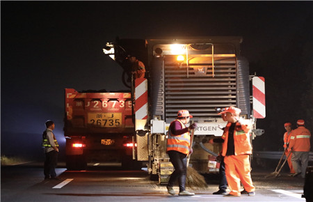 確定日期時間。施工前夕工程部負(fù)責(zé)人反復(fù)與交警、路政等部門溝通協(xié)調(diào),渠道暢通,最終達(dá)成一致意見,為盡量避免給公眾出行帶來影響,施工基本采用夜間斷流封道方式進(jìn)行。施工過程中與高速交警、路政配合默契,封道都在規(guī)定時間內(nèi)開始結(jié)束,盡所能減輕施工對高速營運影響,保證路段通行能力。