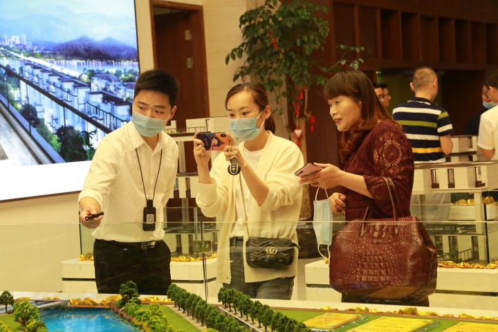 圖為意向客戶前來看房咨詢 據(jù)了解,玖璽逸墅首期共推出32套159㎡-249㎡的疊墅,57套123㎡-203㎡的小高層,樓盤在未開盤前就有許多意向客戶前來問詢登記,實力國企、實惠戶型,受到客戶追捧、業(yè)內好評。截至目前,玖璽逸墅已銷售46套,銷售金額超1.72億元。