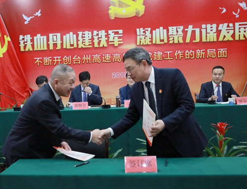 會上,臺州收費所黨支部、臺州南收費所黨支部、大溪嶺隧道所黨支部上臺作黨建工作經(jīng)驗典型發(fā)言。集團領導陳文波與各支部書記簽訂《2019年度黨建工作責任書》、《黨風廉政建設責任書》,各中層以上干部簽訂了《廉潔履職承諾書》。