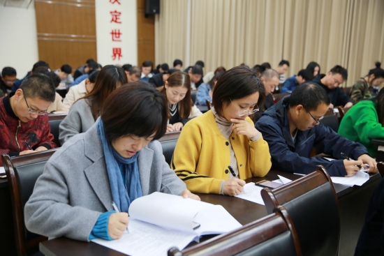 圖為測試現(xiàn)場 此次測試采取閉卷形式,分黨員和非黨員試題兩卷,測試范圍包括“不忘初心、牢記使命”主題教育、十九大報告及習(xí)近平新時代中國特色社會主義思想等知識。大樓近100名員工參加測試。 此次測試既是對學(xué)習(xí)效果的檢驗考核,又是對學(xué)習(xí)成果的鞏固提升,將進一步激發(fā)全體員工學(xué)習(xí)的主動性和積極性,使政治信念更加堅定、理論知識更加充沛、工作熱情更加高漲、行動更加積極務(wù)實,真正起到了以考促學(xué)、以考促記、以考促行的目的。大家紛紛表示要以此次知識測試為東風(fēng),鼓足干勁、學(xué)以致用,勇于擔(dān)當、忠誠履職,在平凡的崗位上干出優(yōu)異成績,努力開創(chuàng)各項工作新局面。 馮曉潔