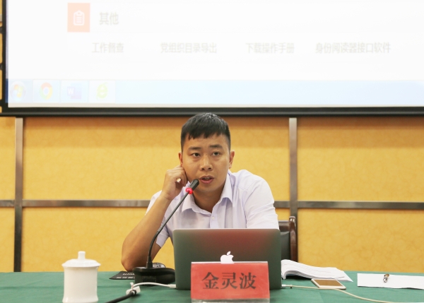 圖為金靈波講解全國黨員管理信息系統(tǒng)實操 下半場培訓(xùn)由臺州市國資委團工委書記金靈波為大家講解全國黨員管理信息系統(tǒng)實操。金靈波從系統(tǒng)模塊分類開始講述,之后延伸到黨建工作的密切聯(lián)系,深入淺出,講一塊通一塊。培訓(xùn)前,各支部落實了黨建系統(tǒng)管理專員,參培人員均佩帶了手提電腦,現(xiàn)場邊學(xué)習(xí)邊實操,大家認真聽講,仔細記錄,現(xiàn)場實操,取得了很好的學(xué)習(xí)效果。 整個培訓(xùn),氣氛活躍,提問積極,交流互動效果顯著。培訓(xùn)結(jié)束后,參培人員紛紛表示,此次培訓(xùn)非常接地氣,有立竿見影的效果,學(xué)到了許多知識,非常實用。 徐夢燁