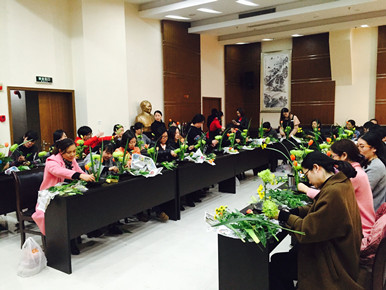3月8日下午,公司47名女員工歡聚一堂,開展了一次具有古樸風韻的插花活動?;顒友埩酥袊寤ɑㄋ噮f(xié)會理事、臺州市花藝文化研究會會長蘇群老師作指導。