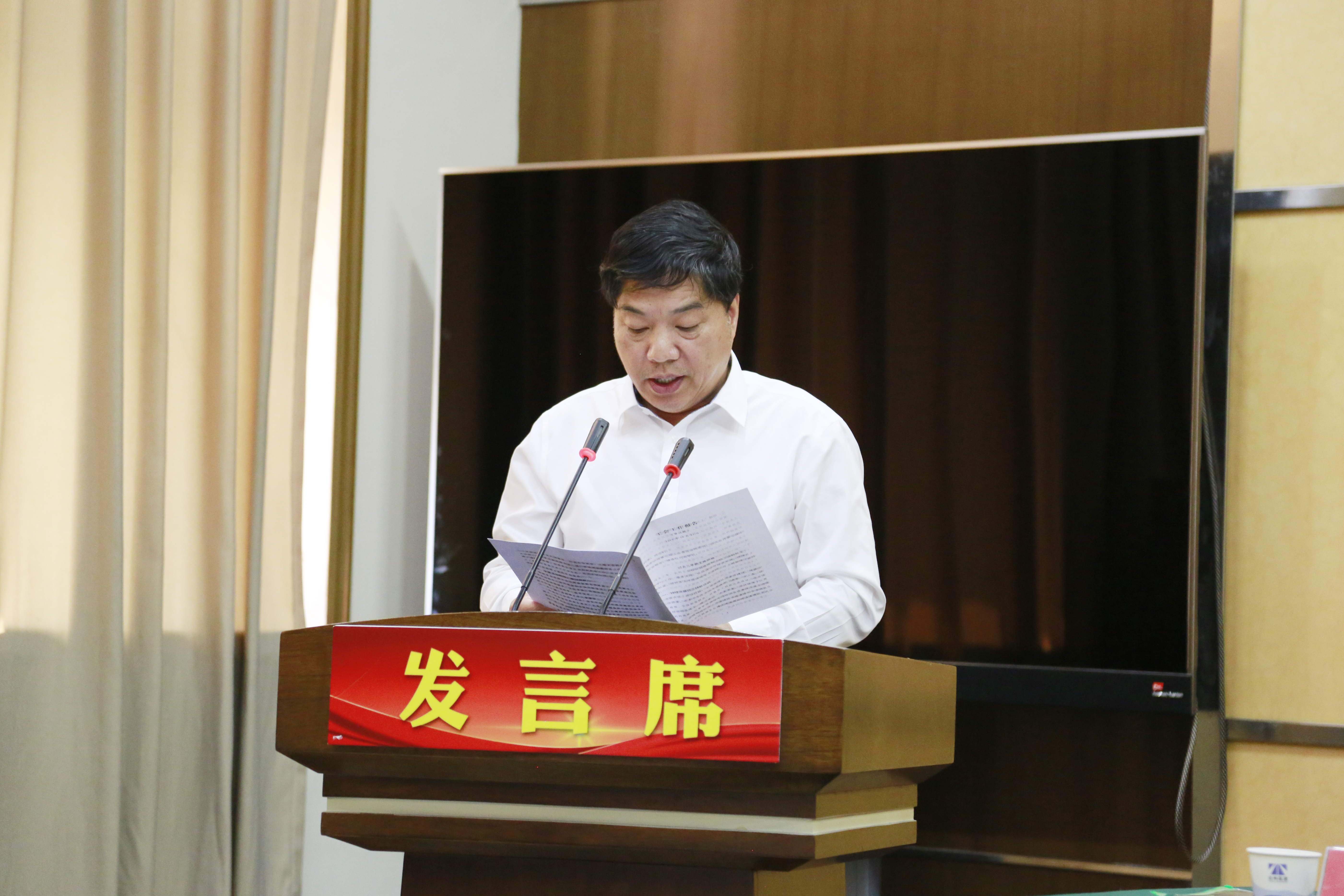 圖為王慧作第七屆工會經(jīng)費審查委員會工作報告