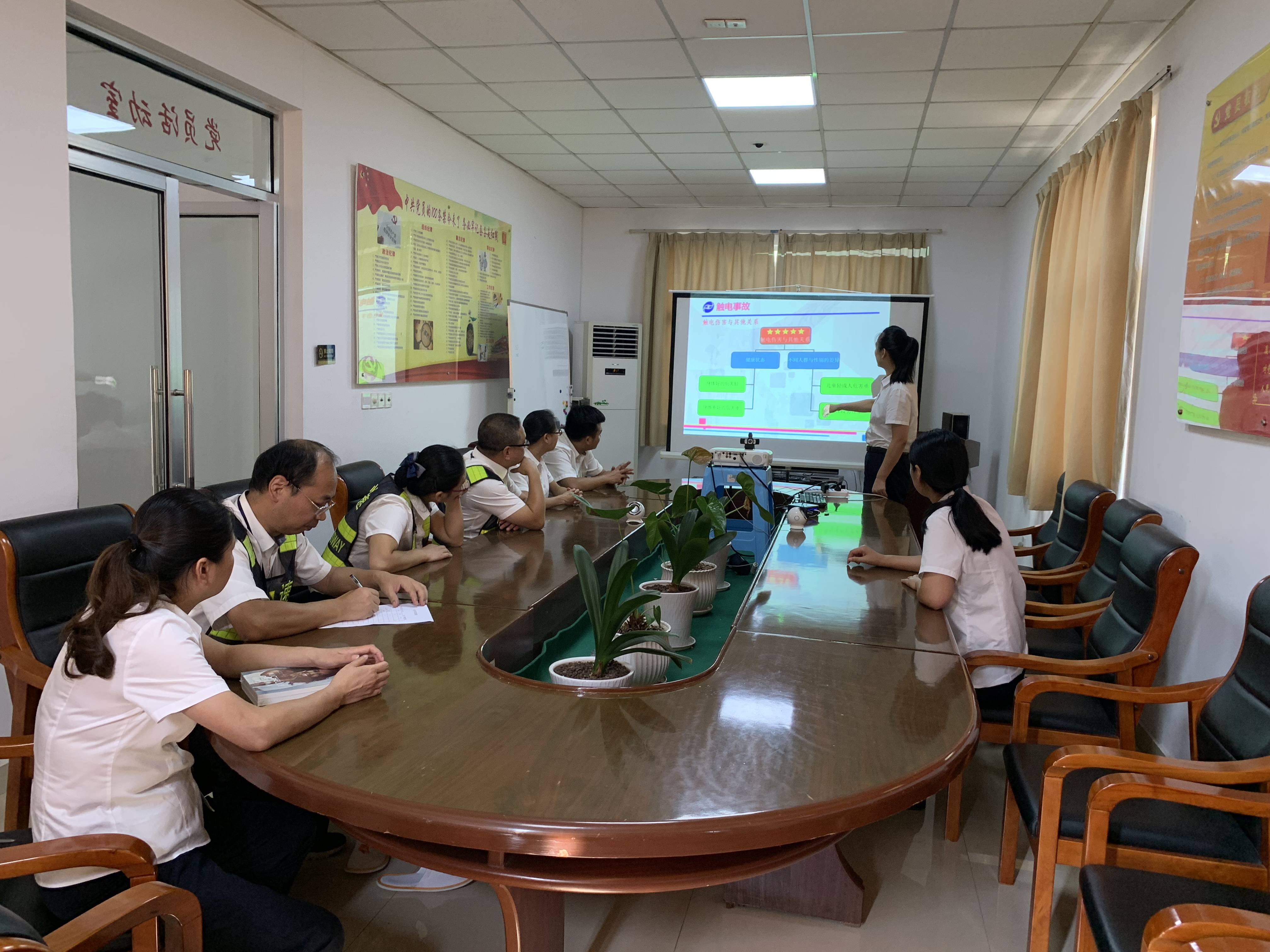 圖為培訓(xùn)現(xiàn)場 夏季是事故多發(fā)季,高溫天氣多變,增加了環(huán)境的不確定因素,給生產(chǎn)帶來了一定的安全隱患。本次臨海南收費所主要從夏季多發(fā)的觸電、雷電、中毒和中暑等方面來講解安全生產(chǎn)。