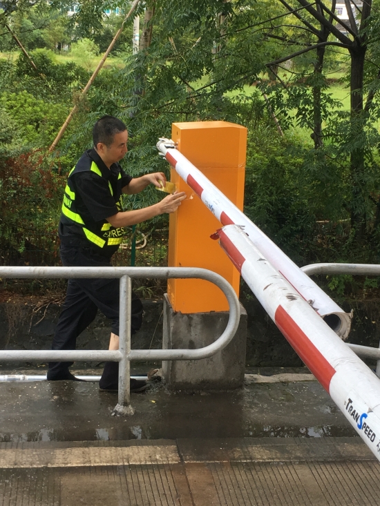 增強(qiáng)機(jī)電設(shè)備防水措施。集團(tuán)收費(fèi)站有很多機(jī)電設(shè)備直接安裝在戶外,因外層有開關(guān)柜保護(hù),一般雨水是無法滲透的??梢坏┯錾吓_風(fēng)雨等惡劣天氣就很難確保內(nèi)部設(shè)備不會被打濕,尤其是計量柜里面的計重設(shè)備,一旦短路損壞會立即造成車輛擁堵。因此,剛完成高桿燈下降工作的中心隊員顧不上休息,又馬不停蹄趕赴收費(fèi)所將計量柜、欄桿機(jī)等重要設(shè)備用封帶紙進(jìn)行密封處理,不漏過任何一處可能進(jìn)水的地方,大大增強(qiáng)了這些設(shè)備防水性能。