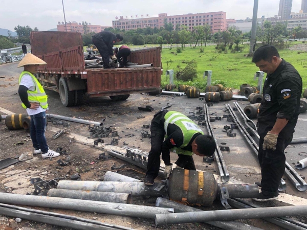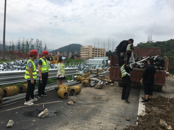 公司多部門(mén)聯(lián)合處置廢舊物資 7月27日,為協(xié)助工程部開(kāi)展6.13浙江溫嶺槽罐車(chē)爆炸事故受損路段維修,盡早恢復(fù)通行。資產(chǎn)管理部在本月第二次聯(lián)合工程部、計(jì)財(cái)部、監(jiān)察室對(duì)公司路損防撞護(hù)欄板及立柱等廢舊物資進(jìn)行處置。