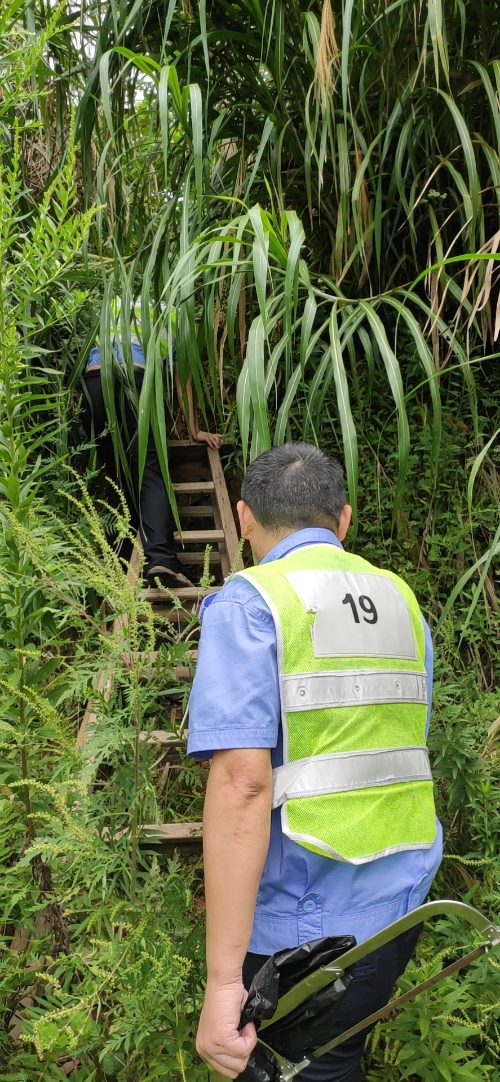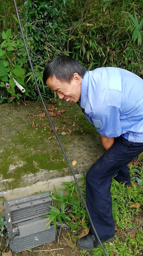 9月23日早上8點(diǎn)45分,中控員發(fā)現(xiàn)大溪嶺隧道北高位水池圖像模糊,照明燈不亮了。 為保障隧道消防安全,中控員對(duì)消防水池的水位需時(shí)時(shí)關(guān)注,萬一水池漏水無法及時(shí)查看,如遇火災(zāi),消防水供應(yīng)不上,后果不堪設(shè)想。隊(duì)長意識(shí)到事情的嚴(yán)重性,即刻安排電工湯寧光和陳幸趕往北面山上的高位水池位置。初秋的山上植物茂盛,原來通往水池的小路早已淹沒在雜草間,隊(duì)員們提著工具,憑著記憶找小路,單手撥開雜草往山上走,到達(dá)高位水池之后,他們分工協(xié)作,一邊檢查線路,一邊抬開井蓋并下到水池檢查照明燈,經(jīng)過檢查后發(fā)現(xiàn)只是線路有點(diǎn)松動(dòng),陳幸馬上對(duì)線路進(jìn)行加固。