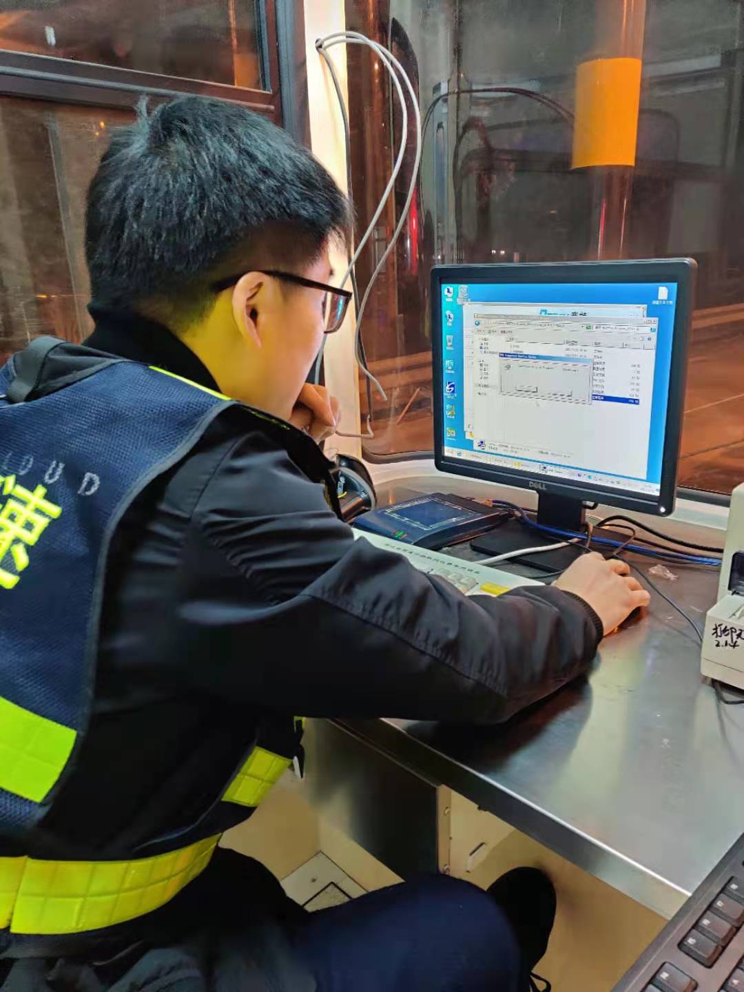 22日一早,中心電工配合廠家人員在車道繼續(xù)查線、接線,安裝崗?fù)さ幕A(chǔ)設(shè)備,系統(tǒng)員則在機房負責安裝新電腦的收費系統(tǒng)及相關(guān)設(shè)備驅(qū)動。大家各司其職、各盡其責,僅一天時間就將近百根線纜一一對應(yīng)并成功與外圍設(shè)備對接,與此同時,系統(tǒng)員也恢復(fù)了原電腦中的數(shù)據(jù)并成功導入到新電腦中,避免了數(shù)據(jù)中斷。在修復(fù)過程中,搶修人員也曾遭遇各種困難,有些設(shè)備安裝需要專用工具,部分零散配件、電源等一般商鋪都沒有供應(yīng),但這些并沒有難倒他們,而是利用各自資源,跑遍了市區(qū)的大街小巷,或借或買,最后都被一一解決。